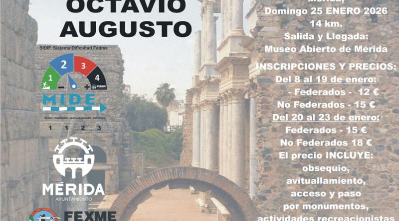 Leer másEl Club de Senderismo Emérita Augusta organiza la XVII Ruta Senderista Monumental Octavio Augusto que tendrá lugar el domingo 25